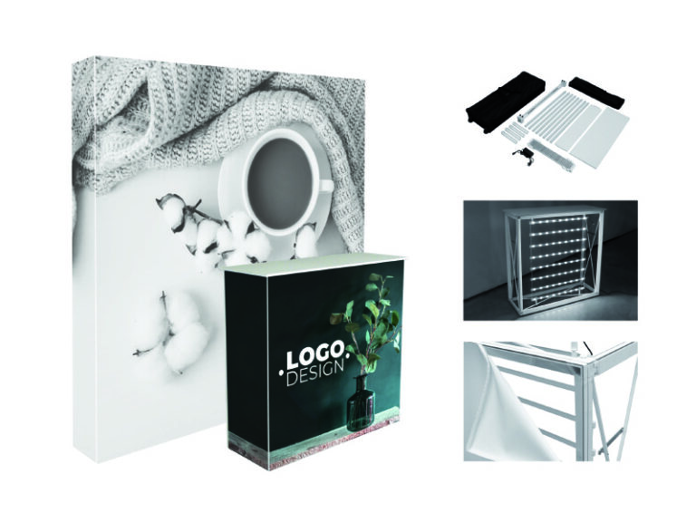 Gør din stand eller udstilling mere synlig med en disk med dit eget design på eller logo. Det er nemt at samle diskene og kan transporteres rundt da der følger en bærertaske med.